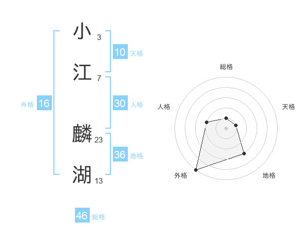 小江 麟湖さんの総格は46画の1点!