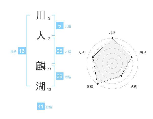 川人 麟湖さんの総格は41画の5点!
