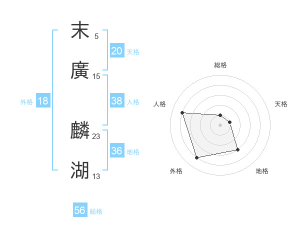 末廣 麟湖さんを姓名の画数から五運を鑑定