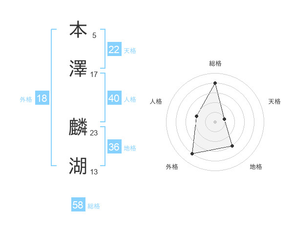 本澤 麟湖さんの総格は58画の4点!