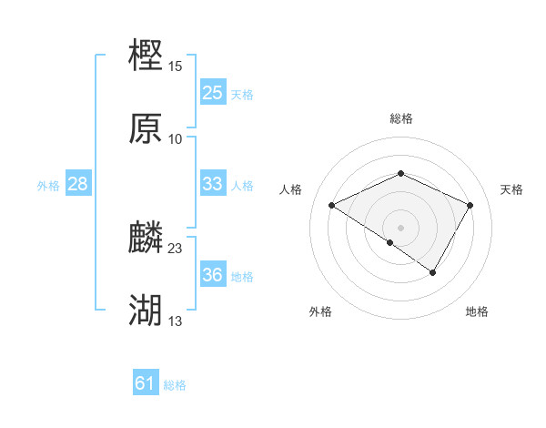 樫原 麟湖さんの総格は61画の3点!