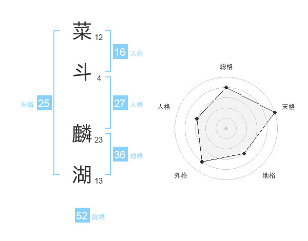 菜斗 麟湖さんを姓名の画数から五運を鑑定