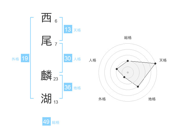 西尾 麟湖さんを姓名の画数から五運を鑑定
