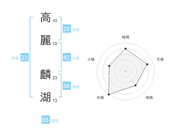 高麗 麟湖さんの総格は65画の4点!