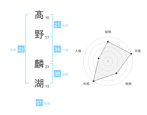 髙野 麟湖さんの天格は21画の5点!