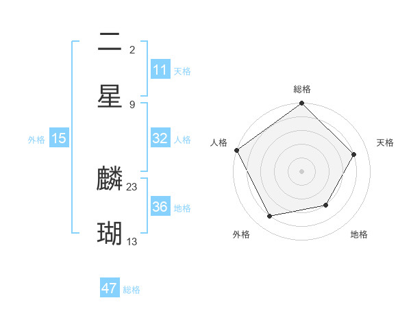 二星 麟瑚さんの総格は47画の5点!