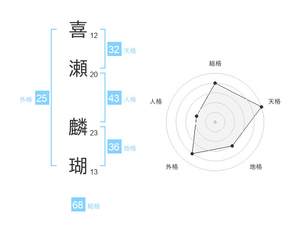 喜瀬 麟瑚さんの天格は32画の5点!