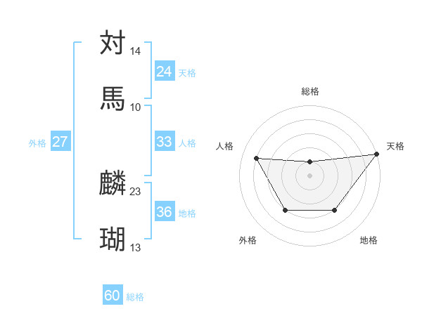 対馬 麟瑚さんを姓名の画数から五運を鑑定