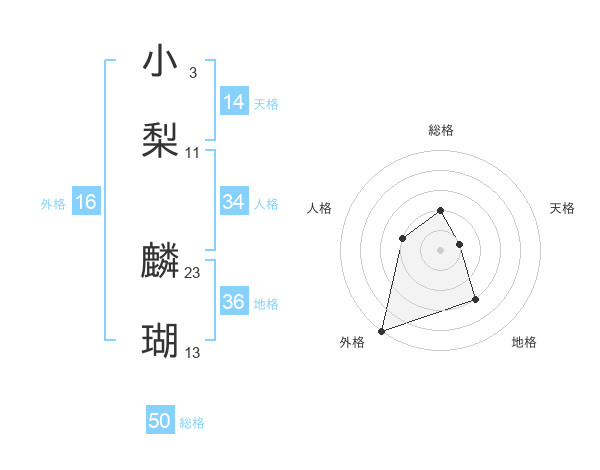 小梨 麟瑚さんを姓名の画数から五運を鑑定