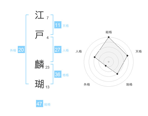 江戸 麟瑚さんの総格は47画の5点!