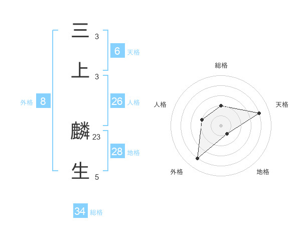 三上 麟生さんの総格は34画の2点!