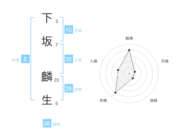 下坂 麟生さんの総格は38画の4点!