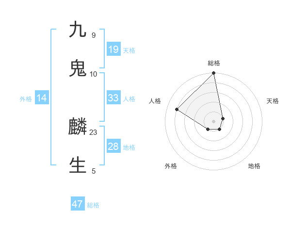 九鬼 麟生さんを姓名の画数から五運を鑑定
