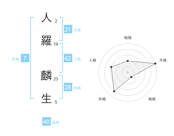 人羅 麟生さんの総格は49画の2点!