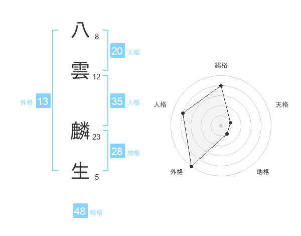 八雲 麟生さんの外格は13画の5点!
