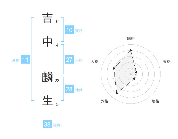 吉中 麟生さんの総格は38画の4点!