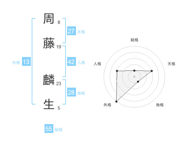 周藤 麟生さんを姓名の画数から五運を鑑定