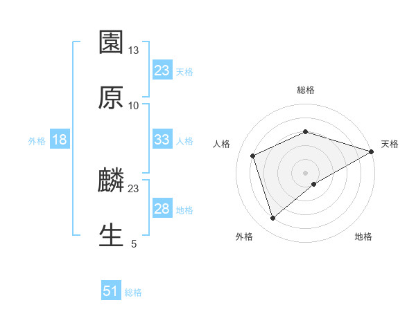 園原 麟生さんの総格は51画の3点!