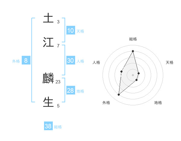 土江 麟生さんの総格は38画の4点!