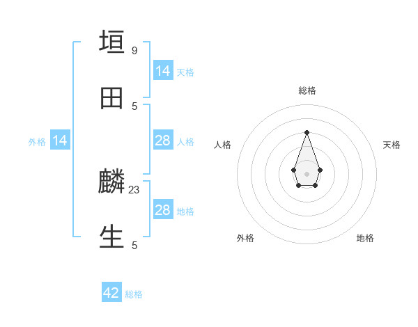 垣田 麟生さんを姓名の画数から五運を鑑定