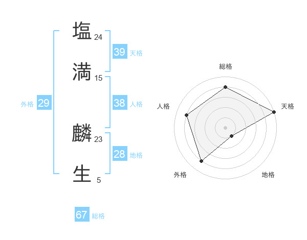 塩満 麟生さんの総格は67画の4点!