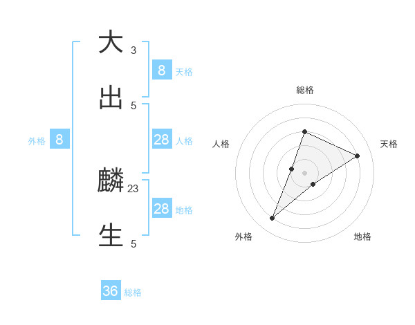 大出 麟生さんの天格は8画の4点!