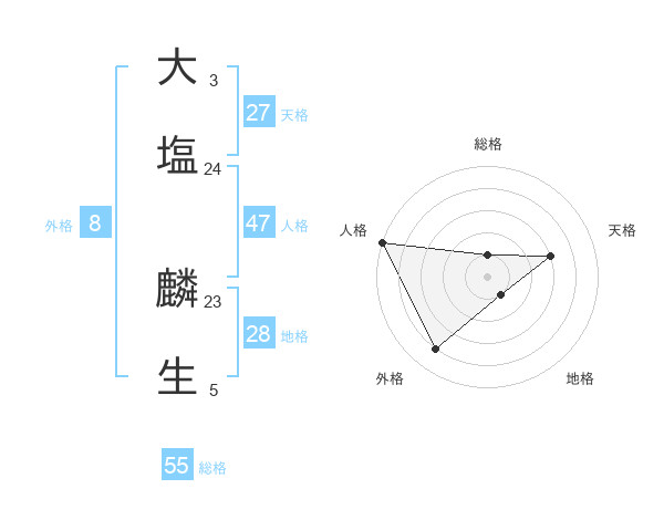 大塩 麟生さんの人格は47画の5点!