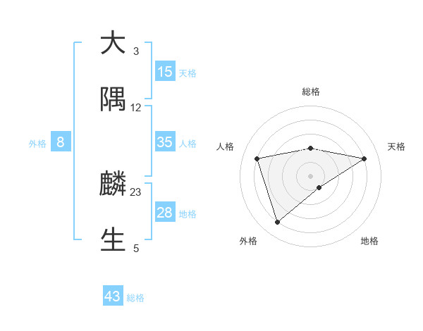 大隅 麟生さんの総格は43画の2点!