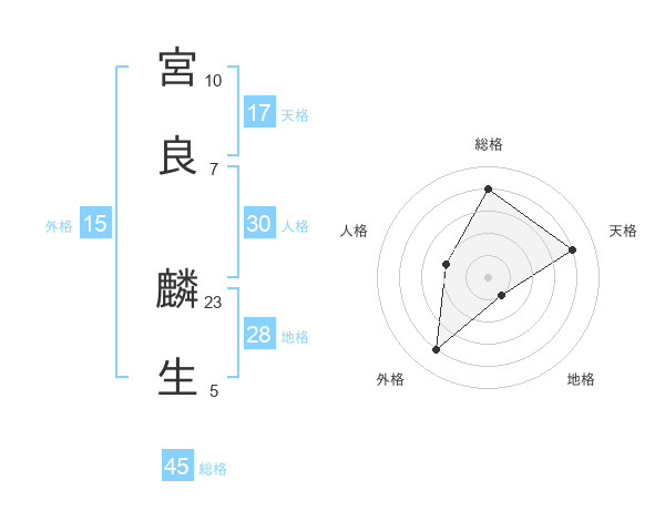 宮良 麟生さんを姓名の画数から五運を鑑定