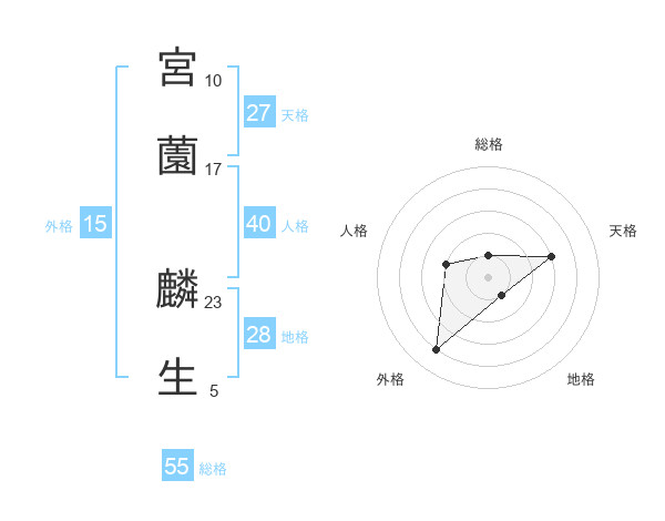 宮薗 麟生さんの総格は55画の1点!