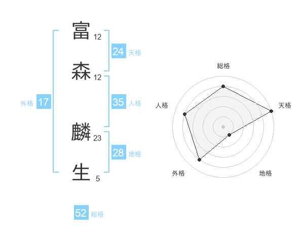 富森 麟生さんの総格は52画の4点!