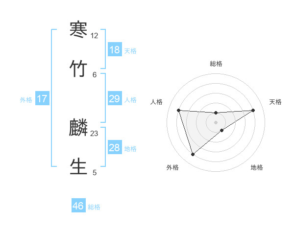 寒竹 麟生さんの天格は18画の4点!