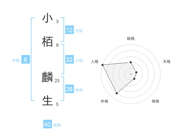 小栢 麟生さんの天格は12画の1点!