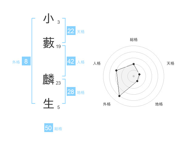 小藪 麟生さんの総格は50画の2点!