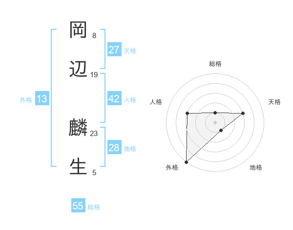 岡辺 麟生さんの外格は13画の5点!