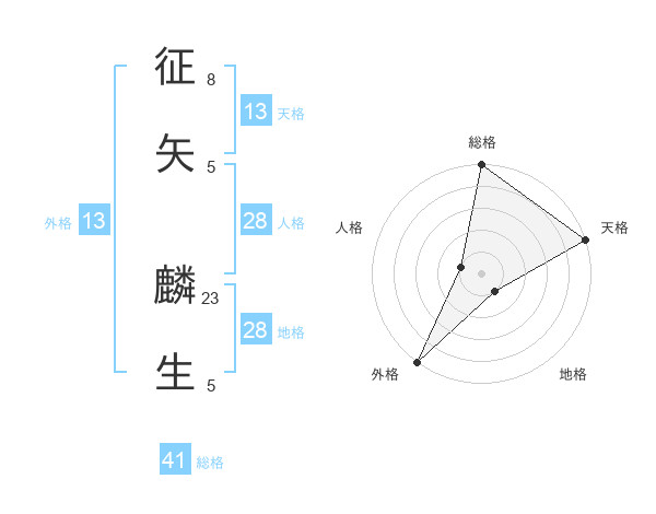 征矢 麟生さんの天格は13画の5点!
