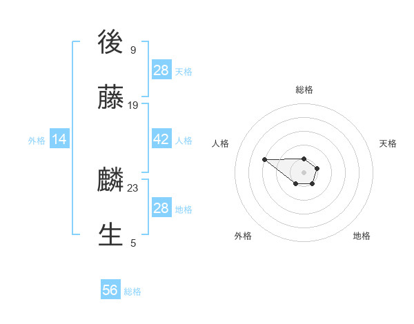 後藤 麟生さんの総格は56画の1点!