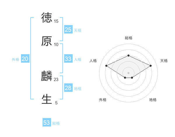 徳原 麟生さんの総格は53画の3点!