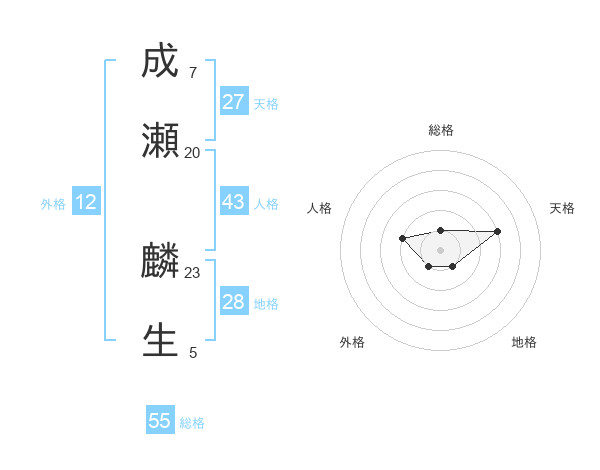 成瀬 麟生さんの天格は27画の3点!