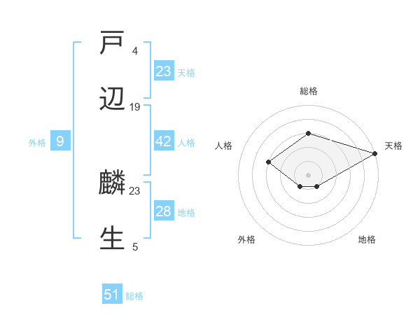 戸辺 麟生さんの総格は51画の3点!