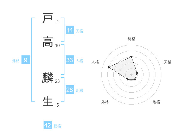 戸高 麟生さんの総格は42画の3点!