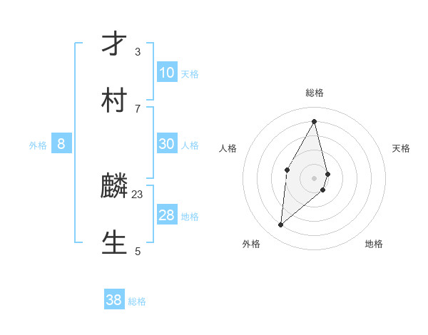 才村 麟生さんの総格は38画の4点!