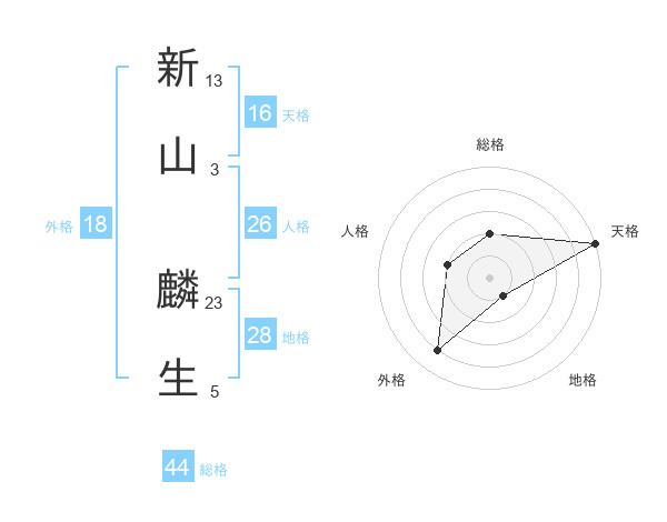 新山 麟生さんの天格は16画の5点!