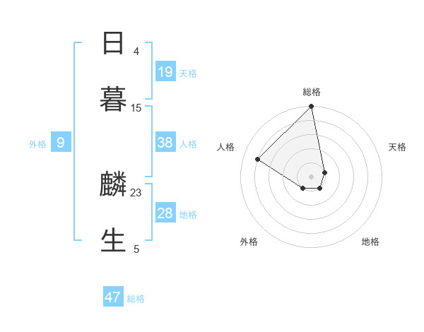 日暮 麟生さんの総格は47画の5点!