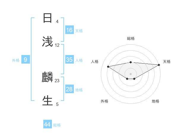 日浅 麟生さんの総格は44画の2点!