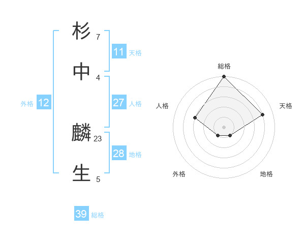 杉中 麟生さんを姓名の画数から五運を鑑定