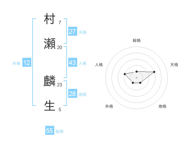 村瀬 麟生さんの天格は27画の3点!