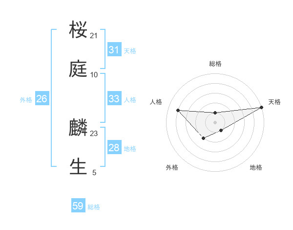 桜庭 麟生さんを姓名の画数から五運を鑑定