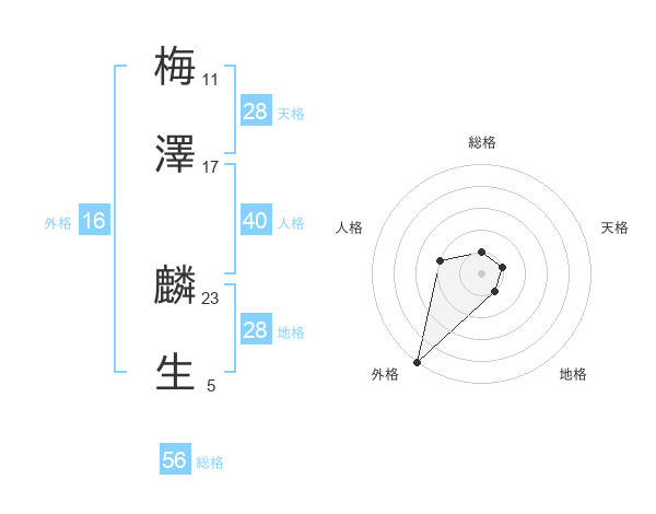 梅澤 麟生さんの地格は28画の1点!