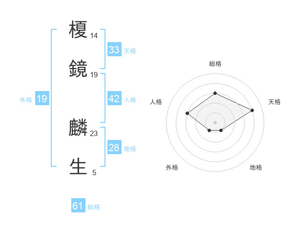 榎鏡 麟生さんの総格は61画の3点!